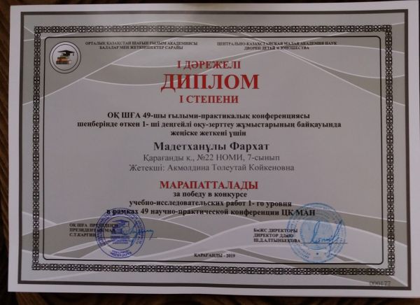 Оқушылар мен жеткіншіктер сарайында Шағын ғылым академиясының 49 ғылыми-практикалық конференциясы аясында оқушылардың зерттеушілік байқауына мектебімізден 4 оқушы қатысып,марапатталды. …