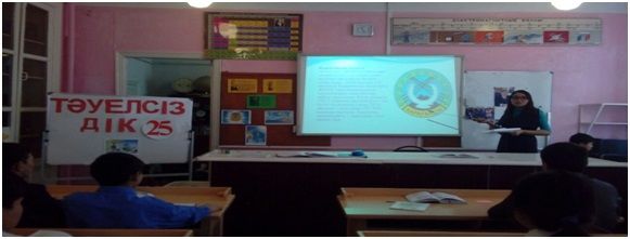 В школе прошел классный урок «Тәуелсіздік-елдігімнің тұғыры»