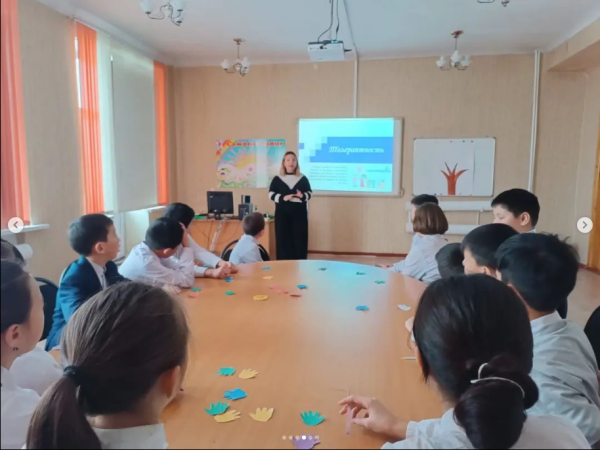 24.11.2022 Даулетбаева Ш.А Балапанова А. А. среди 5-6 классов провели акцию"Дерово толерантности"