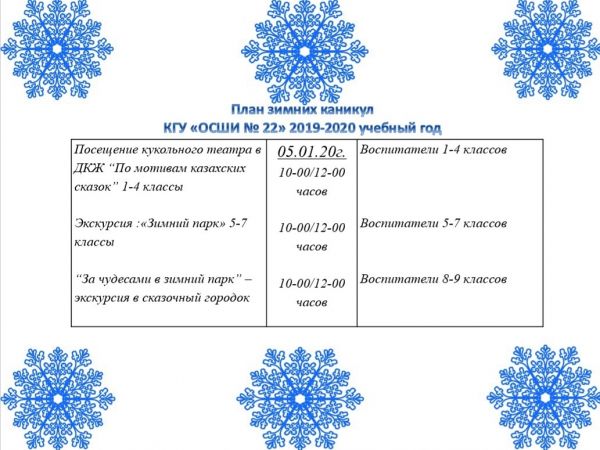 зимних каникул КГУ "ОСШИ №22"2019-2020 учебный год