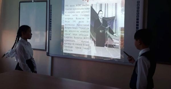 11.12 для учащихся 1- 4 классов была проведена игра- викторина " Моя Родина - Казахстан" .Задачи- закрепить знания детей о нашей Республике, людях, живущих в ней, о государственных символа…