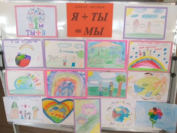 22.11.2019года в рамках декады толерантности была проведена выставка детских рисунков на тему "Я плюс ты равно мы". В рисунках была отражена тема дружбы, взаимоотношений между людьми.