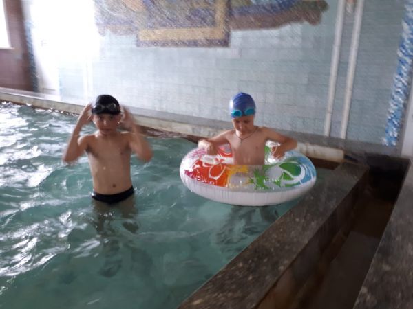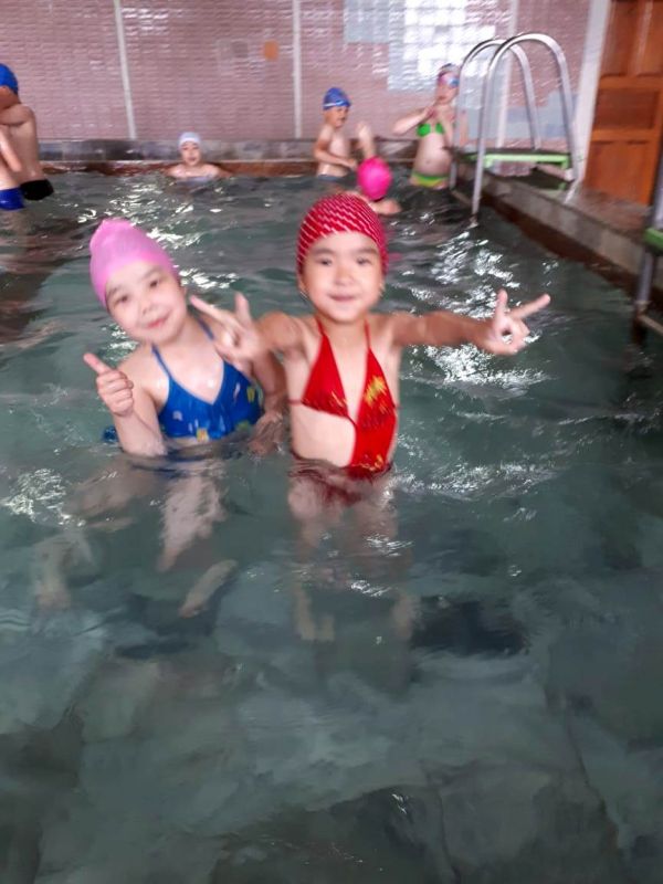 Бұл күнді әдеттегідей таңғы жаттығумен бастап, балалар "Дельфин" бассейніне шомылуға барды.