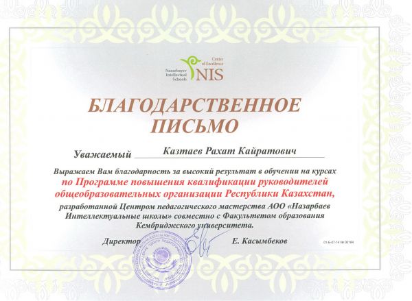 ЖББ №53 ОМЛ ұжымы мектеп директорын Кембридж университетінің Білім беру факультетімен бірлесіп, «Назарбаев Зияткерлік мектептері» дербес білім беру ұйымының…