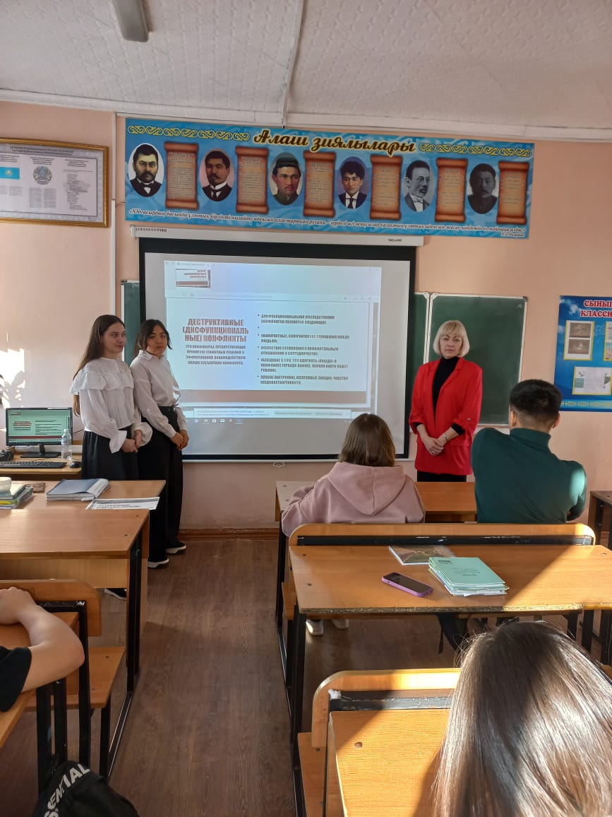 Учащиеся 10 Б класса КГУ ШЛ № 53 в день открытия недели «Психология – удивительная наука» предоставили исследовательские проекты на тему - межличностных отношений и конфликтн…