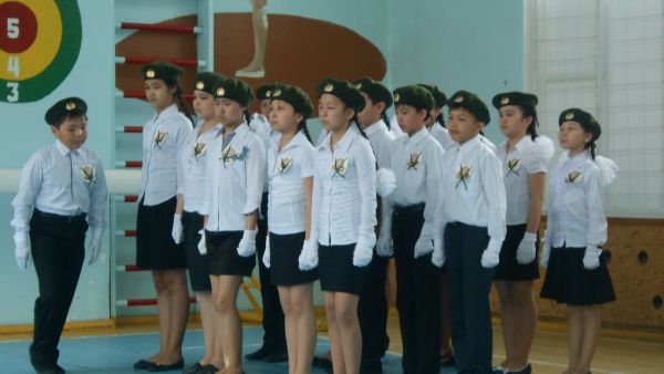 Сағат 10.00 - де спорт алаңында таңғы жаттығу жасау және содан соң «Денсаулық» жаппай жүгірісін өткізу үшін 590 оқушы сапқа т…