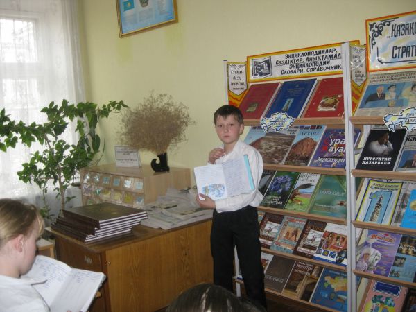 2014 жылғы 22 және 24-сәуірде 5 «а» және 5«ә» сыныптарында жыл басында берілген тапсырма – оқу күнделігі бойынша кітапханалық сабақ өткізілді.