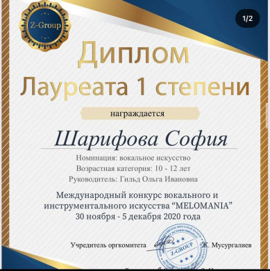 30 ноября – 5 декабря прошёл Международный дистанционный конкурс вокального и инструментального искусства «MELOMANIA»