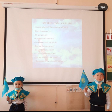 1 "А" сыныбында "Менің Отаным-Қазақстан!" атты сынып сағаты өтті. Сынып сағатының мақсаты: Оқушылардың туған өлкемізге деген сүйіспеншілігін, сезімдерін ояту. Елін, жерін сүюге,…