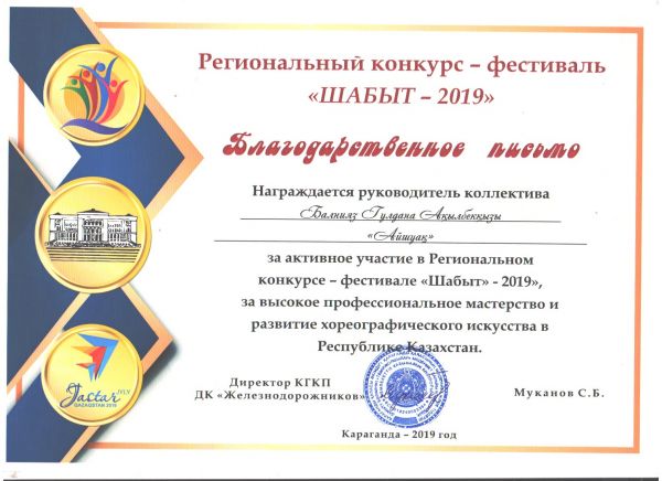 28.04.2019ж Теміржоушылардын мәдениет үйінде Аймақтық«Шабыт-2019» атты конкурс-фестивалі өтті. Біздің мектебімізден «Айшуақ» би ансамблі қатысып I орыңға ие болды. Ж…
