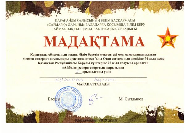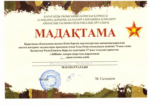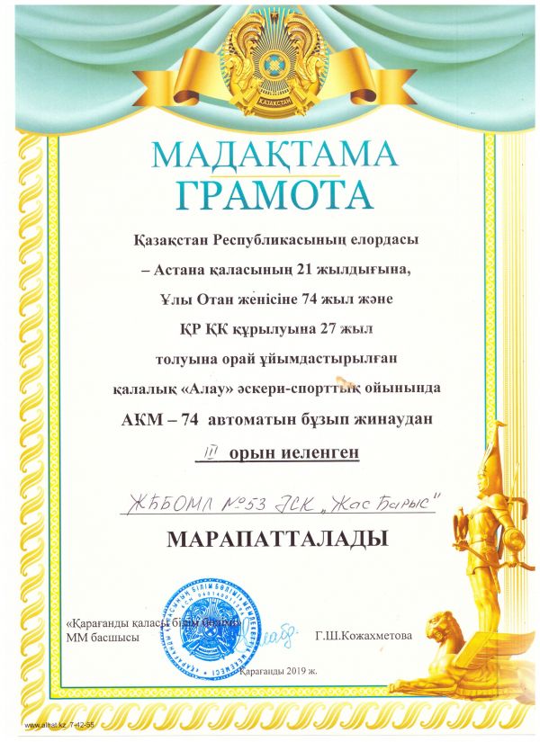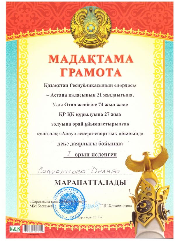 Қазақстан Республикасының елордасы – Астана қаласының 24 жылдығына, Ұлы Отан жеңісіне 74 жыл және ҚР ҚК құрылуына 27 жыл толуына орай ұйымдастырылған қалалық «Алау» әскери-спорттық…