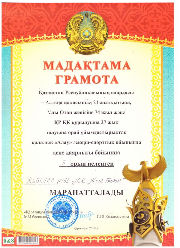 17.04.2019жБалалар мен жеткіншектер сарайында Қарағандының 85 жылдық мерейтойы қарсаңында және Кеңес әскерлерінің Ауғаныстан жерлерінен шығарылғанына 30 жыл толуына орай Облыстық «Қалқан…