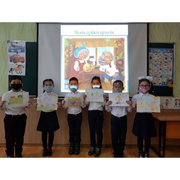 ОҚУ сауаттылығы апталығы аясында «Менің сүйікті ертегім» бойынша 1 «А» сыныбында сурет көрмесі өтті. Сынып жетекшісі: Г. К. Шарипова