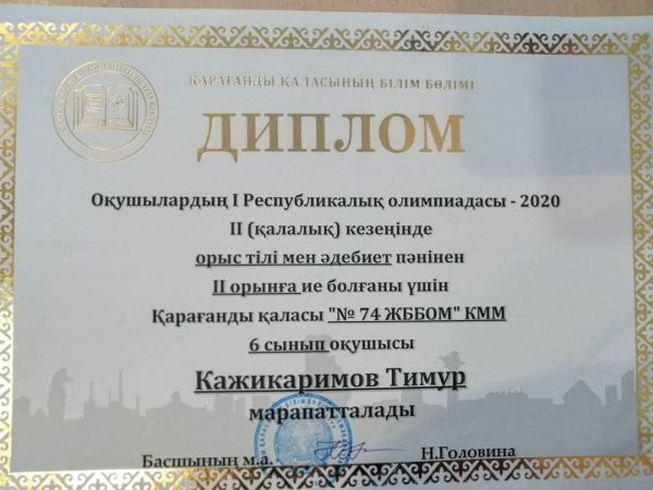 Республикалық "Әдістемелік вернисаж" сайысында, " оқыту+қызықтыру" номинациясы бойынша әдістемелік әзірлеме бойынша жүлделі 2 орын иеленген химия пәні мұғалімі Алибекова Гульнара…
