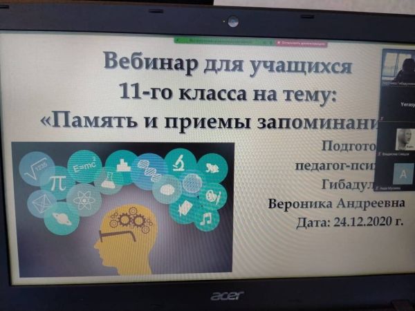 24.12 2020, педагог-психолог Гибадуллина В.А., с учащимися 11 "А" класса, провела занятие на тему "Память и приемы запоминания" Цель: знакомство с характеристиками памяти человек…