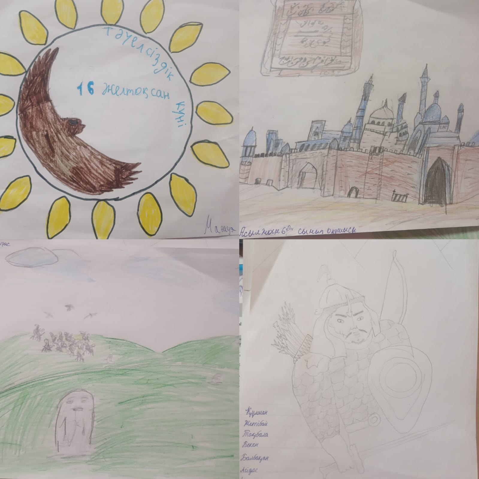 "Тарих толқынында" тарихи сауаттылық апталығы аясында 5-6 сынып оқушылары арасында сурет көрмесі ұйымдастырылды. Мақсаты: Туған халқына, Отанына, оның тарихи тағдырына деген құрмет сезімін…