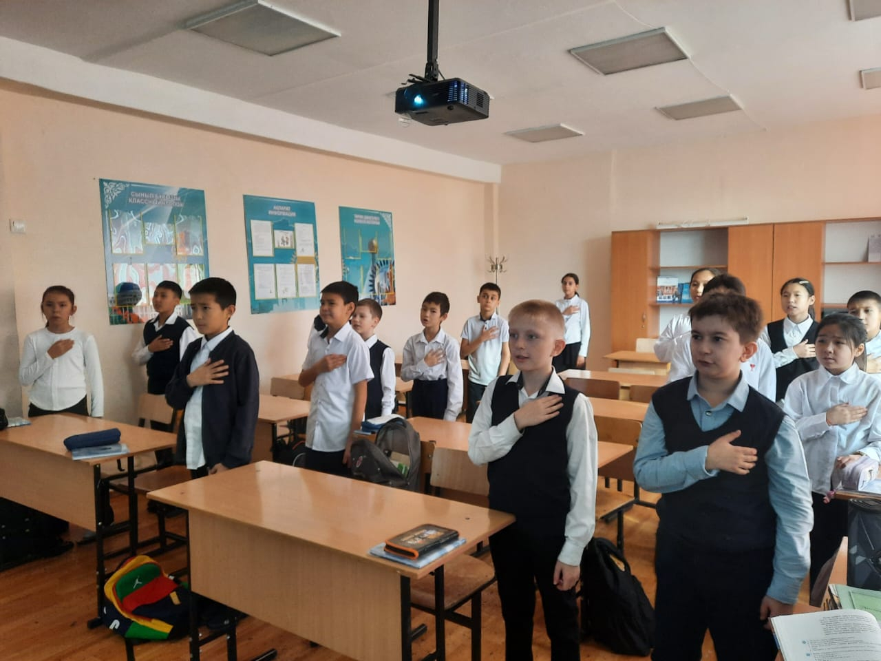 Сабақ әнұран орындаудан басталып, апта дәйексөзі ме…