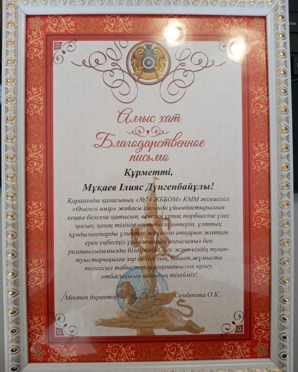 Мектебімізде " Өнегелі өмір" жобасы аясында Орталық Қазақстан" газетінің Бас редакторының орынбасары, ақын Ілияс Дүнгенбайұлы Мұқаевпен онлайн-кездесу өтті. Сұхбат барысында…
