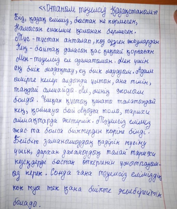 Қазақстан Республикасы Тәуелсіздік күніне орай "Отаным - Тәуелсіз Қазақстан" атты шығарма байқауы,