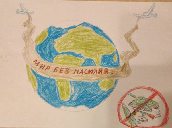 В рамках проведения акции"16 дней без насилия" учащиеся 4 Б класса приняли участие в конкурсе рисунков"Мир без насилия".