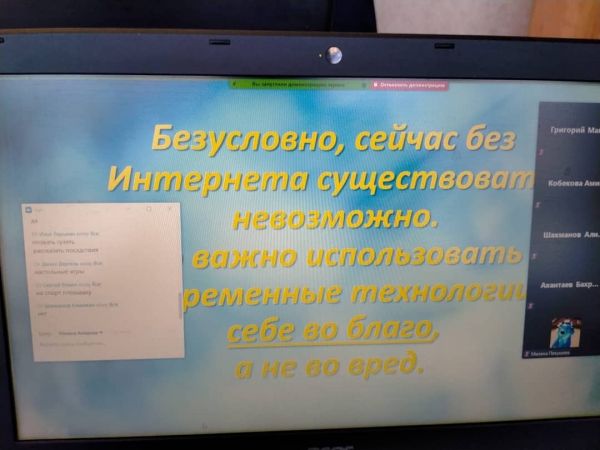 08.12.2020 с целью профилактики интернет зависимости и кибермошенничества, педагог-психолог Гибадуллина В.А., с учащимися 7 "Б" класса, организовала онлайн встречу на тему "Я и интерн…