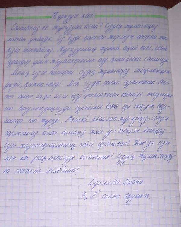“Жүргізушіге хат”. Дүйсенбек Диана, 7 “А”