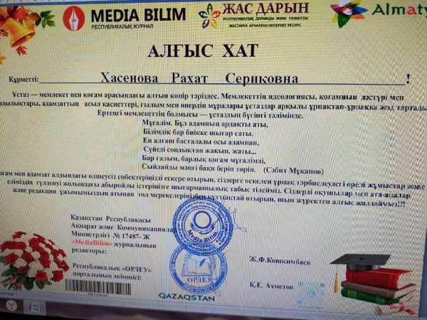 8 қазан 2020 жылы «5-ші сынып оқушыларының бейімделу ерекшеліктері. Психологтың ата-аналармен кездесуі» онлайн-конференциясын ата-аналармен педагог-психолог Бакирова Нургул Бегайдаровна…
