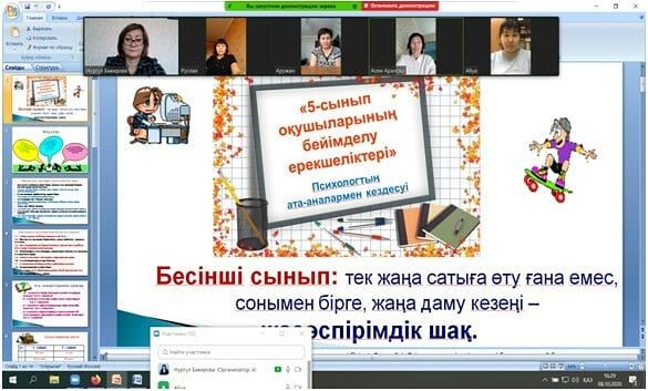 8 қазан 2020 жылы «5-ші сынып оқушыларының бейімделу ерекшеліктері. Психологтың ата-аналармен кездесуі»