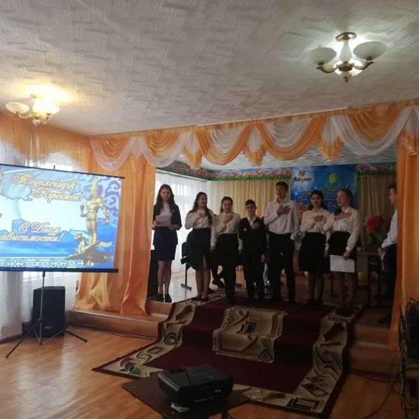9 Г,В сыныптарында Тәуелсіздік күніне арналған "Тұғыры биік Қазақстан"тақырыбында сынып сағаты өтті.