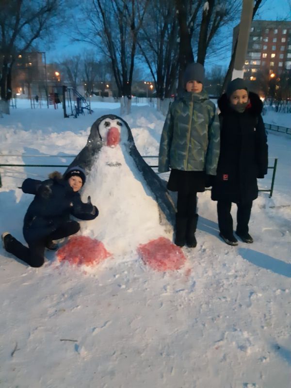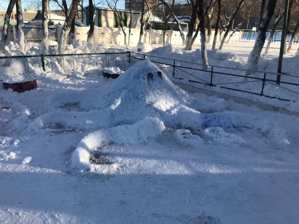 Жаңа жыл мерекесі қарсаңында мектептің алдына қардан мерекелік мүсіндерді орнатты
