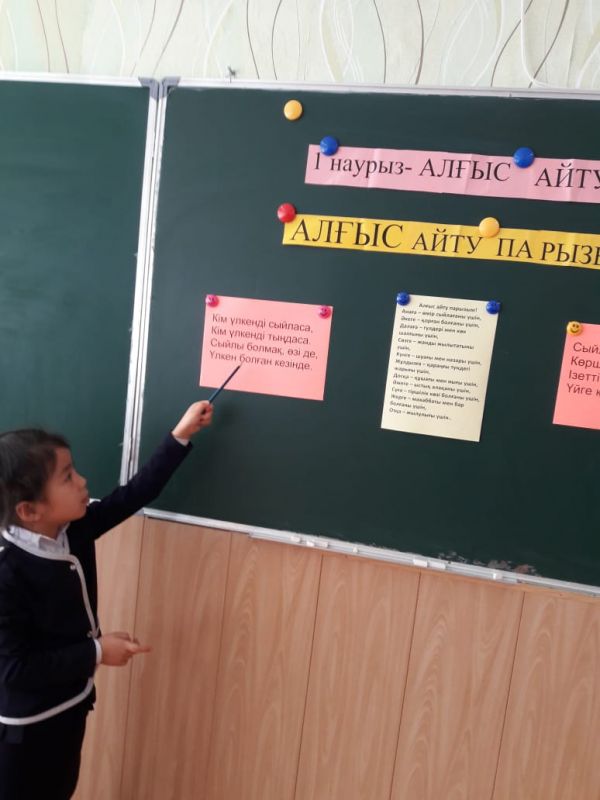 1 Наурыз "Алғыс айту" мерекесіне орай 1 "Б" сыныбында "Алғыс айту-парызым!" атты тәрбие сағаты өтті. Оқушылар кімге не үшін алғыс айту керектігін білді.