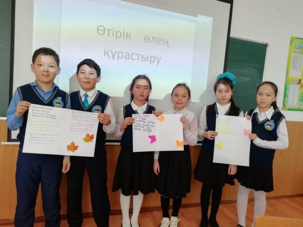 3 жəне 4 сынып арасында қазақ тілі апталығы бойынша"Өтірік өлең" құрастыру сайысы болып өтті.Оқушылар өлең құрастыру арқылы өздерінің ақындық шеберліктерін көрсете білді.