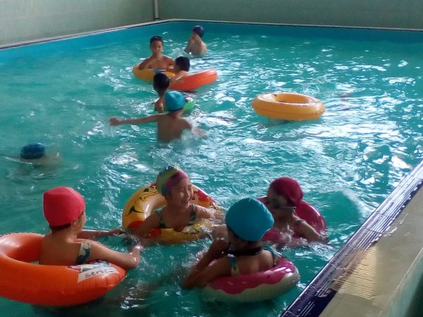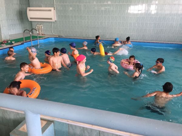 27-маусым 2018 жылы мектеп жанындағы "Құлыншақ" лагерінің балалары №77 ЖББОМ базасындағы бассейнге суға түсіп, мектепте "Суда сақ бол" тақырыбында ойынға қатысып, күндерін көңілд…
