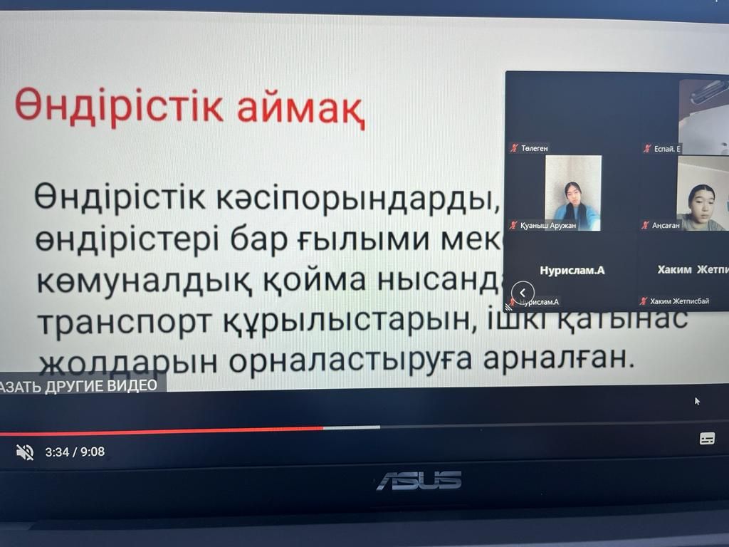 21.02.2024ж. География пәнінен 9 А, Ә сыныптарында “Қазақстандағы ойконимдер, Қазақстандағы елді мекендердің мәселелері ” тақырыбында сабақ қашықтықтан ZOOM платформасында өтті.