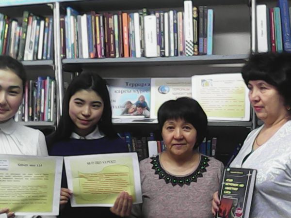 Бүгін мектеп кітапханашысы Қалмағанбетова Ғ.Қ. орталықтандырылған 8 филиал кітапханасымен бірлесе отырып 9 "В" сынып оқушыларымен "Террорға қарсы күрес-ұлттық қауіпсіздіқ кепілі"…