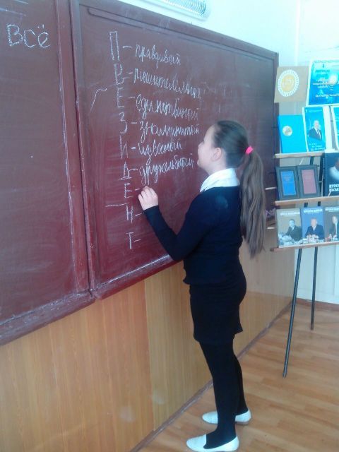 30.11.2016г. Зав. Школьной библиотекой Демченко И.Б. совместно с классным руководителем 6 «Б» класса Абдильдиной А.А. провели познавательный час с элементами деловой игры «Президен…