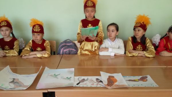 4- ші сәуір күні «Құстар – біздің досымыз» атты сынып сағаты өтті. Сынып жетекшісі Садуакасова М.Ж мен кітапханашылар Калмағамбетова Ғ.Қ , Балтина С.Ж…