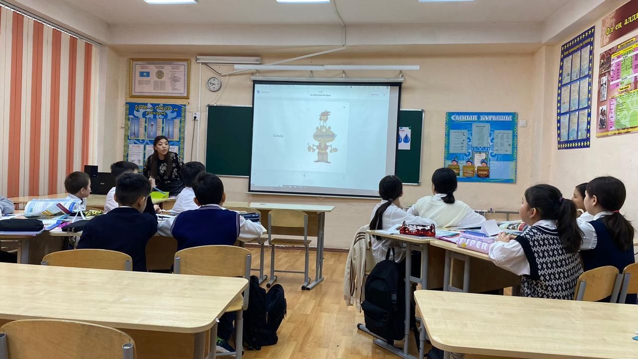 14.02.2024ж. Ағылшын тілі апталығы аясында 5 “А” сынып оқушыларымен “An article about two places” тақырыбында ашық сабақ өтті.