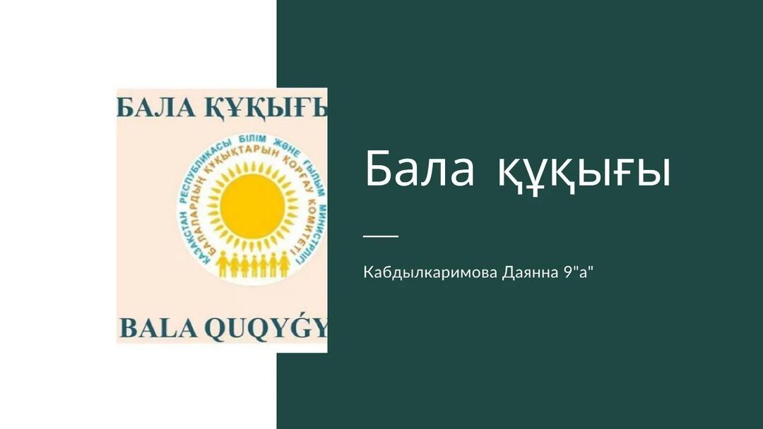 16.02.2024ж. "Құқықтық навигатор" атты құқықтық сауаттылық апталығында 9 "А" сынып оқушысы Қабдылкаримова Даянна "Бала құқығы" атты презентация дайындады.