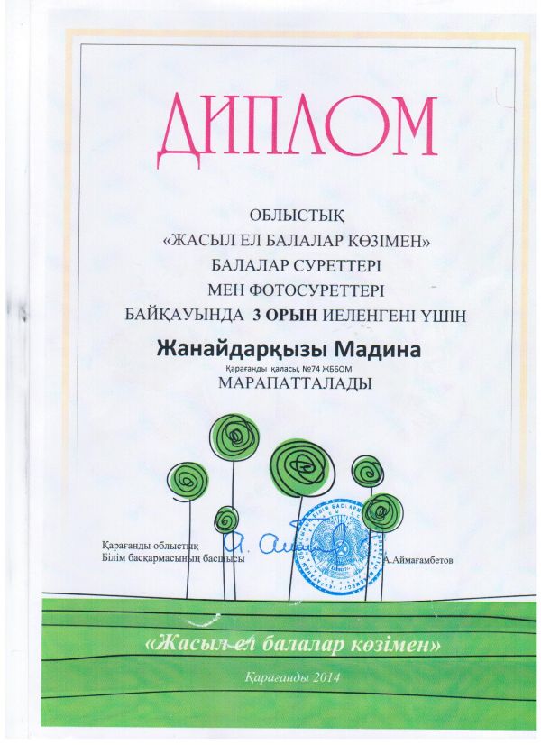 Учащиеся школы Фесенко Алексей, ученик 4 «А» класса и Жанайдарқызы Мадина,ученица 1 « Ә» класса заняли призовые места в областном конкурсе фотографий …