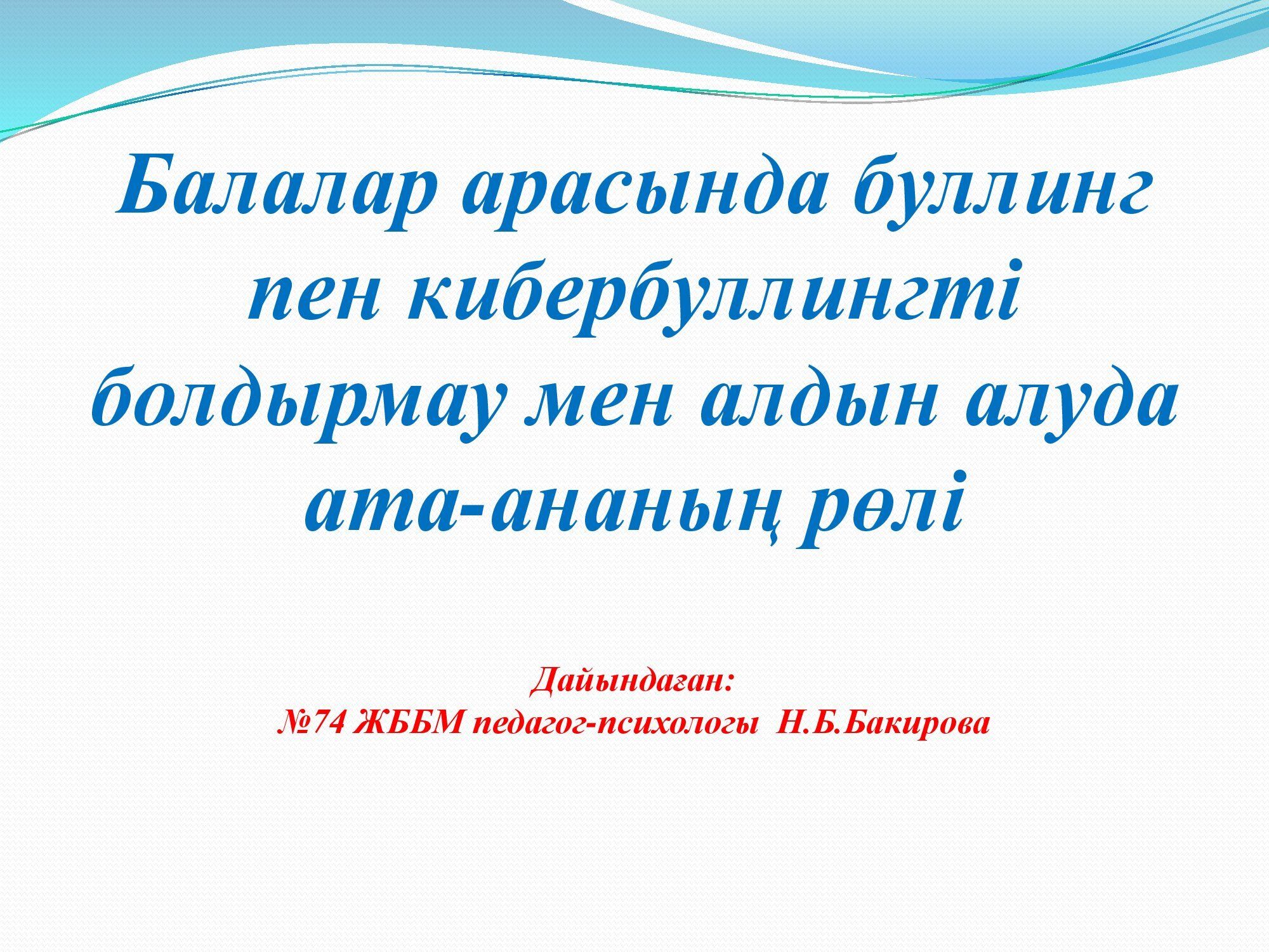 "Балалар арасында буллинг пен кибербуллингті болдырмау" тақырыбында мектеп педагог-психологының ата-аналарға арналған кеңестері.