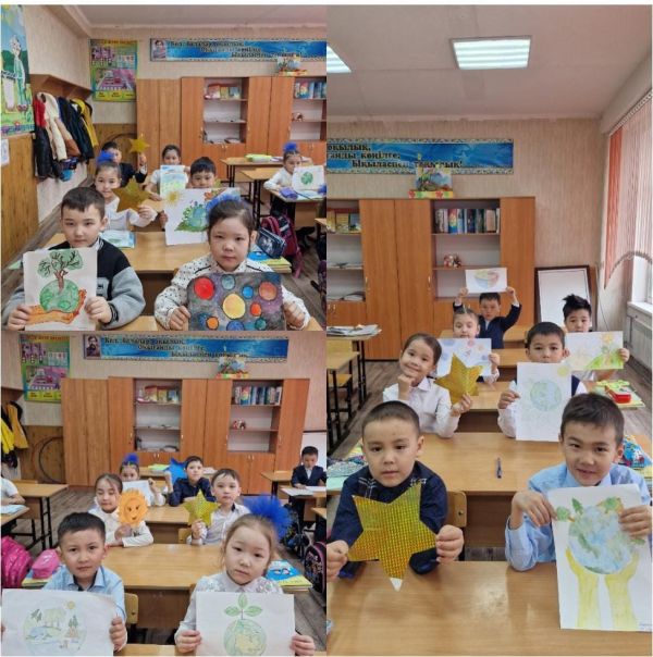 “Ғылым және технология” жаратылыстану-ғылыми сауаттылық апталығы аясында, 1"Ә" сыныбында “Жасыл планета” тақырыбында сурет көрмесі.