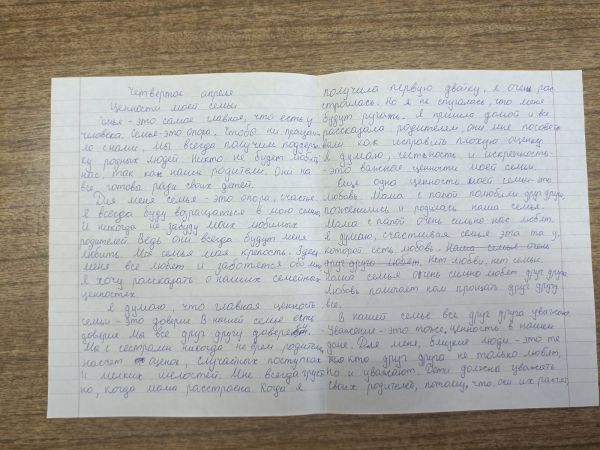 В рамках Недели читательской грамотности в 8х-9х классах было написано эссе на тему "Ценности моей семьи".