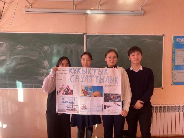 9 "А"сыныбындағы "Құқықтық сауаттылық" тақырыбында өз ойларын ортаға салды.