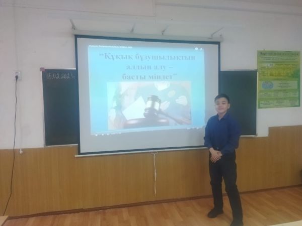 "Құқықтық тәрбие апталығы" аясында 8 А сыныбы Жасөспірімдер арасында құқықбұзушылықтың алдын алу мақсатында видеоролик көрсетіліп, пікірталас өткізілді.