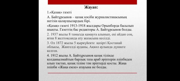 Алаш зиялысы Ахмет Байтұрсынұлының құрметіне 9 "В" сынып оқушыларымен ұлт ұстазының өмір баяны мен шығармашылығымен танысып, артынан сұрақ - жауап ұйымдастырылды.