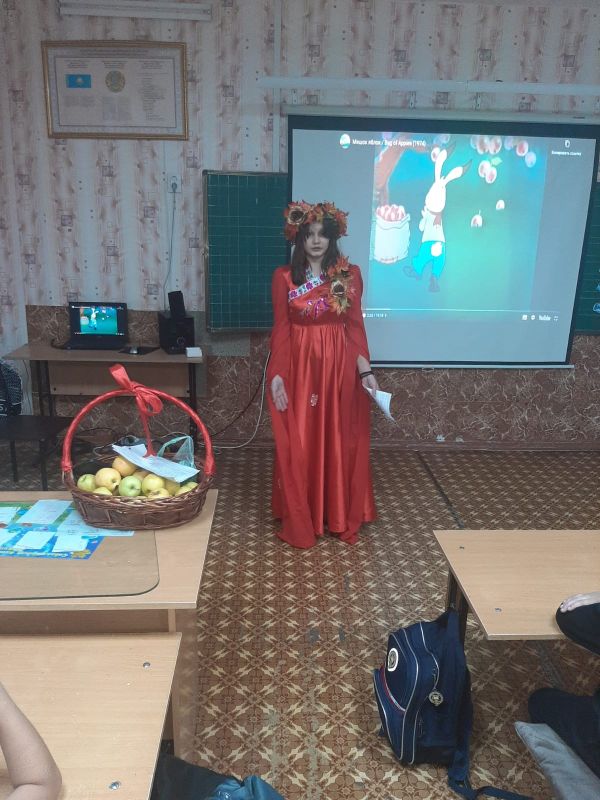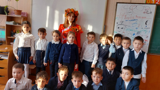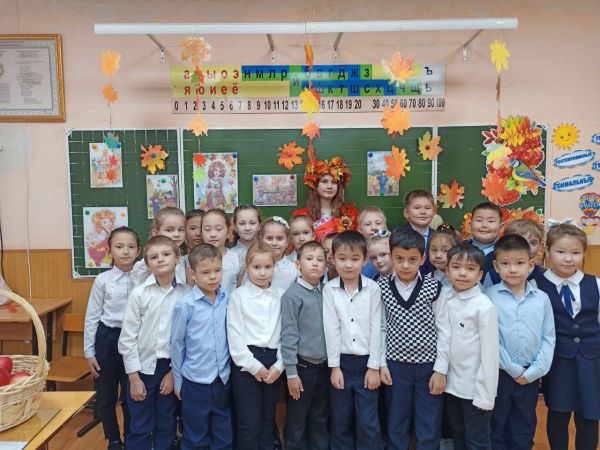Учащиеся 1 в класса с улыбкой и огромным интересом встретили королеву Осень. Она пришла со своими загадками и играми. В качестве приза ребята получили корзину с яблоками. Классный руководитель: Аста…