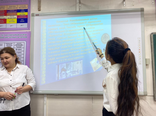 Ұлттық валюта мерекесі қарсанында 8 А сыныбының "ҚР мемлекеттік валютасы- теңге" атты сынып сағатында оқушылар әр елдің валютасын талдады, сұрақтарға жауап берді.