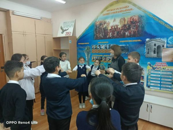 "Психология- ғажайып ғылым!" психология апталығы аясында 5 сынып оқушыларымен педагог-психолог Бакирова Н. Б. "Қарым-қатынас қуанышы" тақырыбында тренинг жаттығуларын ұцымдастыры…