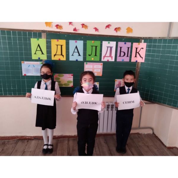 3"А"сыныбында "Адалдық-асыл қасиет" атты сынып сағаты өткізілді. Адал дос, адал сауда, адал өмір сүру керектігі жайлы әңгімеленді. Сынып жетекшісі: М. Ж. Садуахасова.